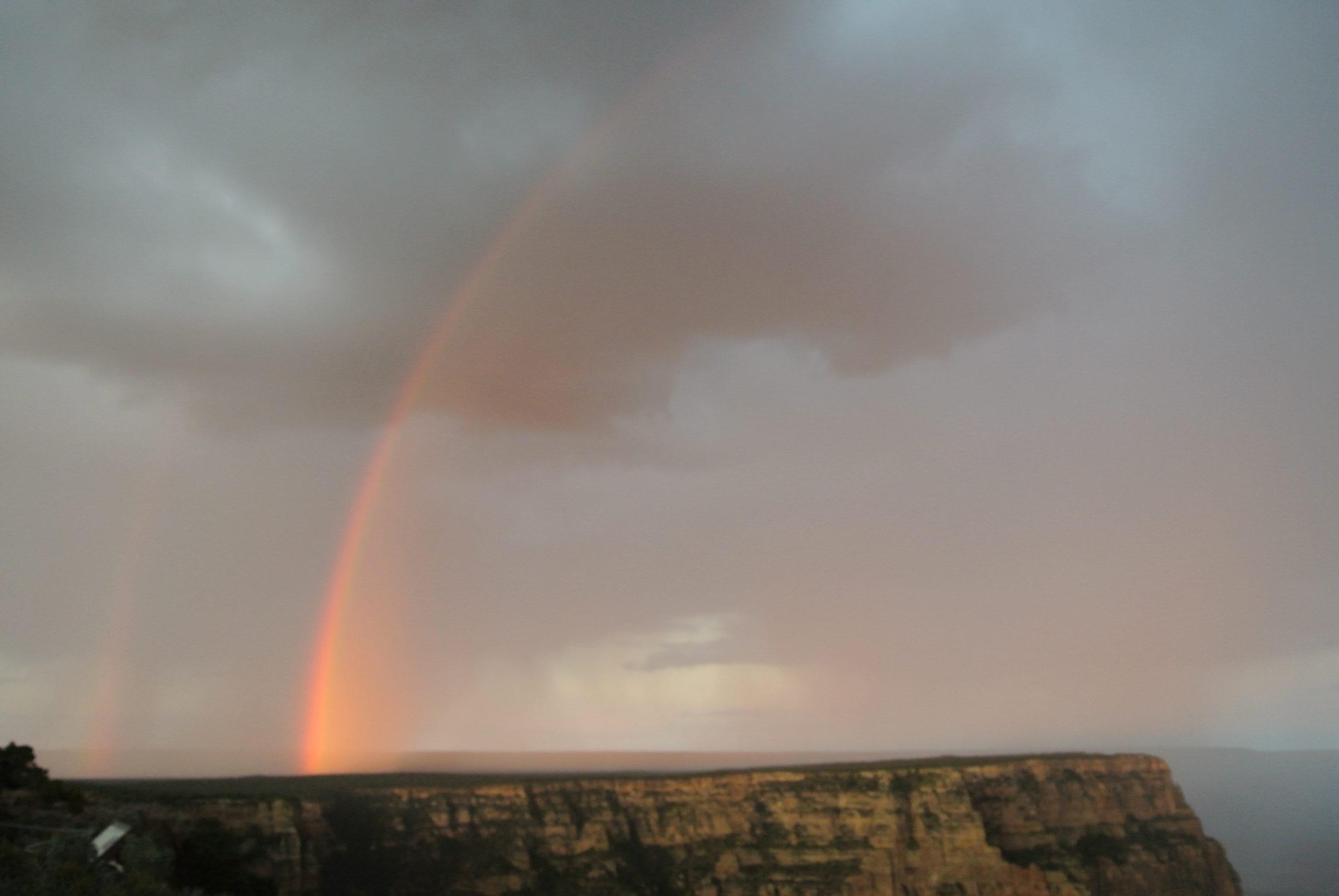 4年前にグランドキャニオンに行ったときの写真です。日の出の絶景ポイントまで行こうと早起きしたものの、外は大雨。ダメもとでホテルを出て雨の中現地に着くと、突然雨が上がって空には虹が!よく見ると2本架かっているんです。天に感謝の瞬間でした。
